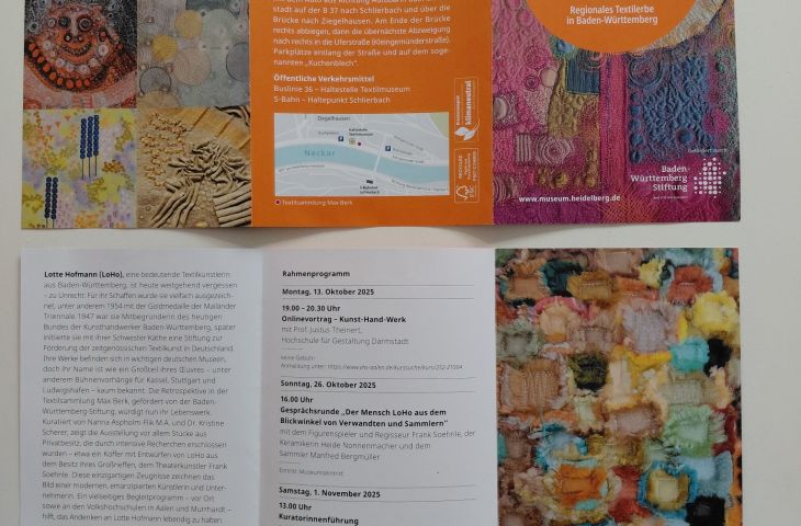 Die in Nachkriegsdeutschland in Baden-Württemberg agierende Textilkünstlerin Lotte Hofmann/ LoHo (1907, Karlsruhe - 1981, Schwäbisch Hall) begann ich ab 2021, Dank eines Corona-Stipendiums des Ministeriums für Wissenschaft, Forschung und Kunst Baden-Württemberg, näher zu forschen. Inzwischen bin ich in den Beirat der "Lotte-Hofmann-Stiftung für Textilkunst in Deutschland" berufen worden, die im Bundesverband Kunsthandwerk e.V. in Frankfurt a.M. eingebettet ist. Die Forschung wird Ende September 2025 sichtbar, wenn die große Lotte-Hofmann-Retrospektive - Regionales Textilerbe in Baden-Württemberg im Textilmuseum Max Berk Heidelberg-Ziegelhausen eröffnet. Die Baden-Württemberg Stiftung fördert das Gesamtprojekt, sowohl die vielschichtige kuratorische Vorarbeit, als auch meine Vermittlungsarbeit in Form von Textiltechnikkursen, Vorträgen, und Führungen. Im Begleitprogramm kommen u.a. Privatleihgeber_innen zu Wort, Verwandte LoHos, eine Textilrestauratorin, ein Kunstsammler und ein Architekt, der LoHos Werk als Kunst-am-Bau integrierte.